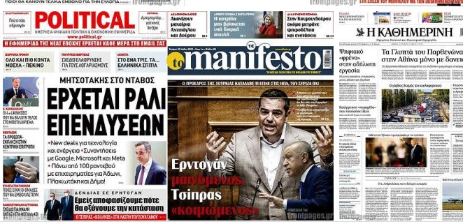 Κοινοποίηση Facebook Twitter LinkedIn Pinterest Email Copy Link Δείτε τα πρωτοσέλιδα των σημερινών εφημερίδων Πρωτοσέλιδα