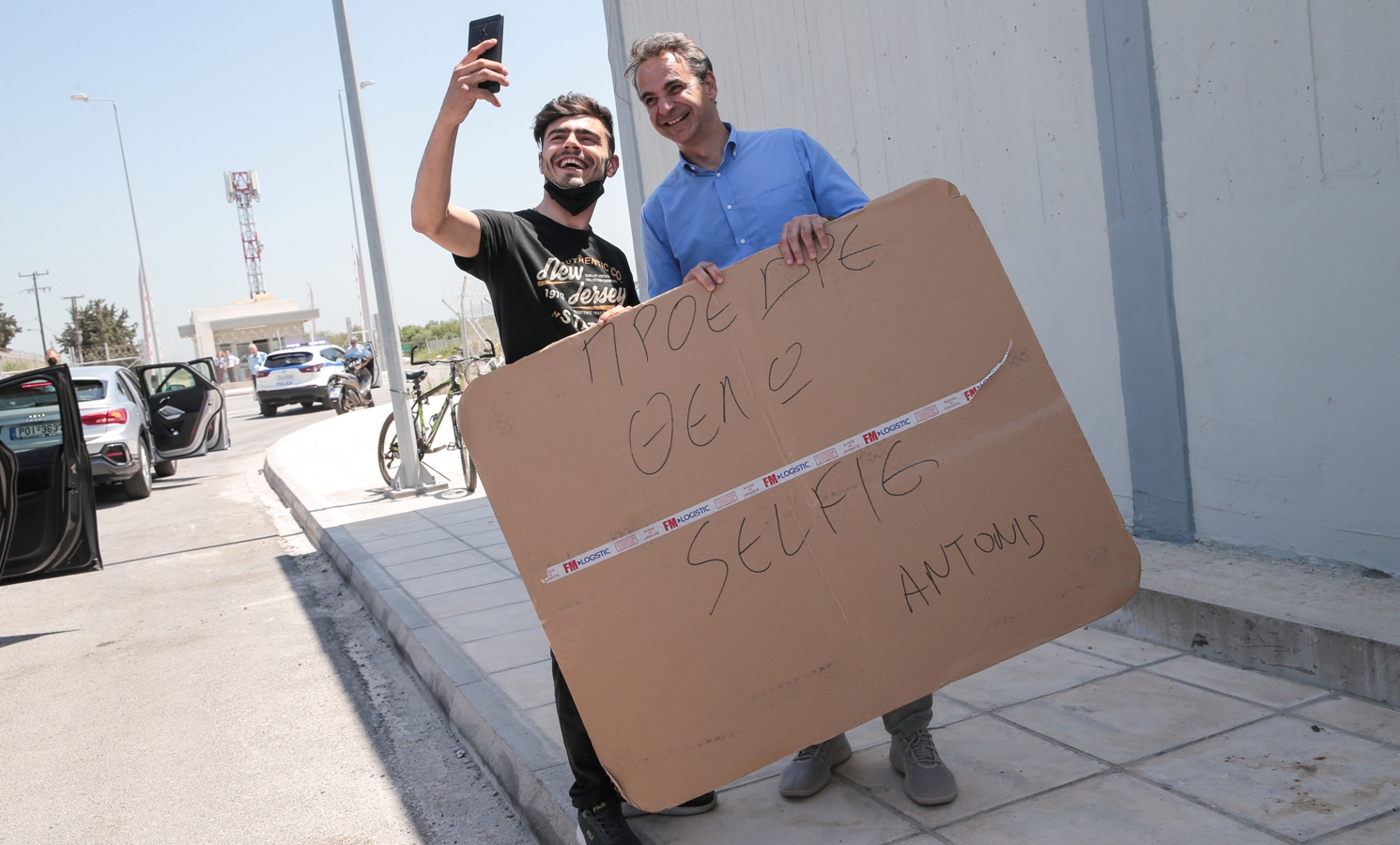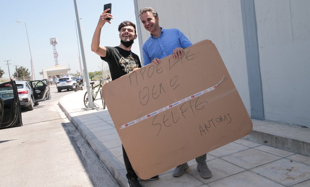 Όπως ανήρτησε ο ίδιος ο Κυριάκος Μητσοτάκης στο Instragram, ο νεαρός τρέχει προς το μέρος του, κρατώντας ένα χαρτόνι στο οποίο αναγράφεται η φράση «Πρόεδρε θέλω Selfie. Αντώνης».