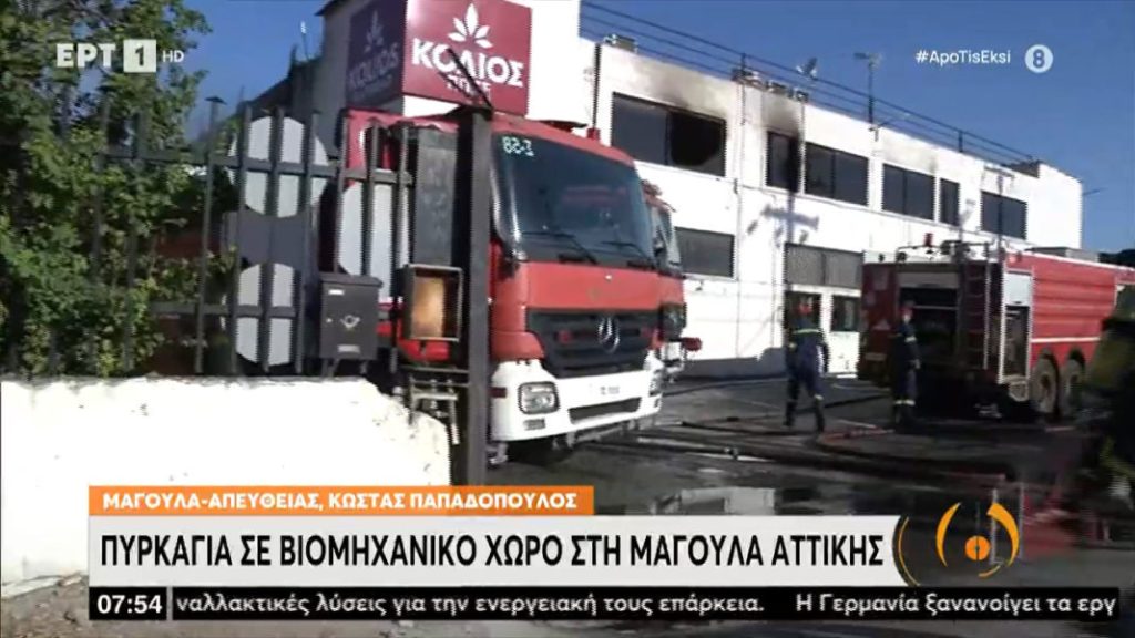 Πυρκαγιά ξέσπασε νωρίς το πρωί σε βιομηχανικό χώρο επί της οδού Γ. Γεννηματά, στη Μαγούλα Αττικής. Πρόκειται για εργοστάσιο που παρασκευάζει είδη ζύμης. Η εικόνα που παρουσιάζει αυτή την ώρα η φωτιά είναι βελτιωμένη καθώς περιορίστηκε μόνο σε ένα τμήμα του εργοστασίου και δεν επεκτάθηκε σε όλο τον χώρο. Για την κατάσβεση της φωτιάς επιχειρούν 24 πυροσβέστες με 8 οχήματα.