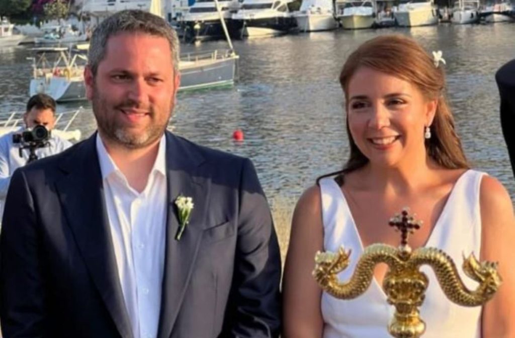 Κουμπάρα στον γάμο ήταν η υφυπουργός Τουρισμού, Σοφία Ζαχαράκη.