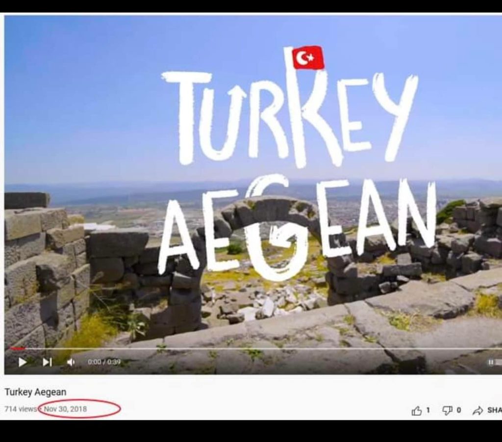 Τέλος να πούμε στον κ. Τσίπρα ότι φυσικά και επί θητείας του οι Τούρκοι διαφήμιζαν το «Τουρκικό Αιγαίο» και τότε (η φωτό ειναι από το 2018) ούτε με τα πόδια πήγε πουθενά ούτε διαμαρτυρήθηκε πουθενά.
