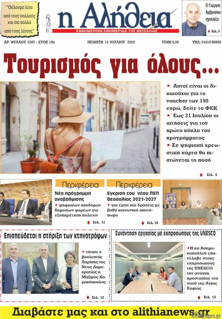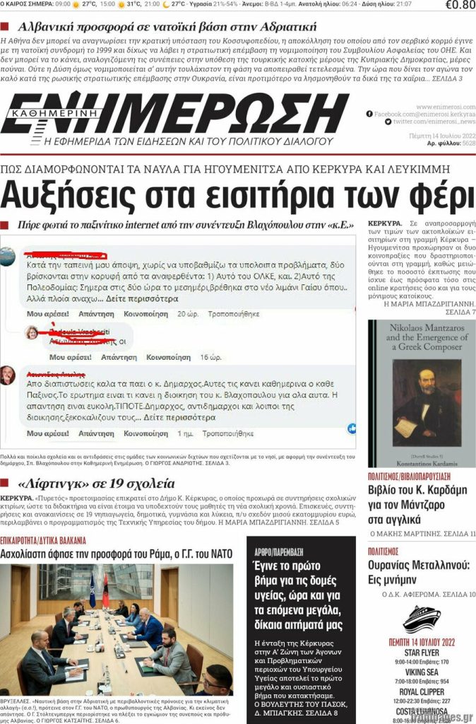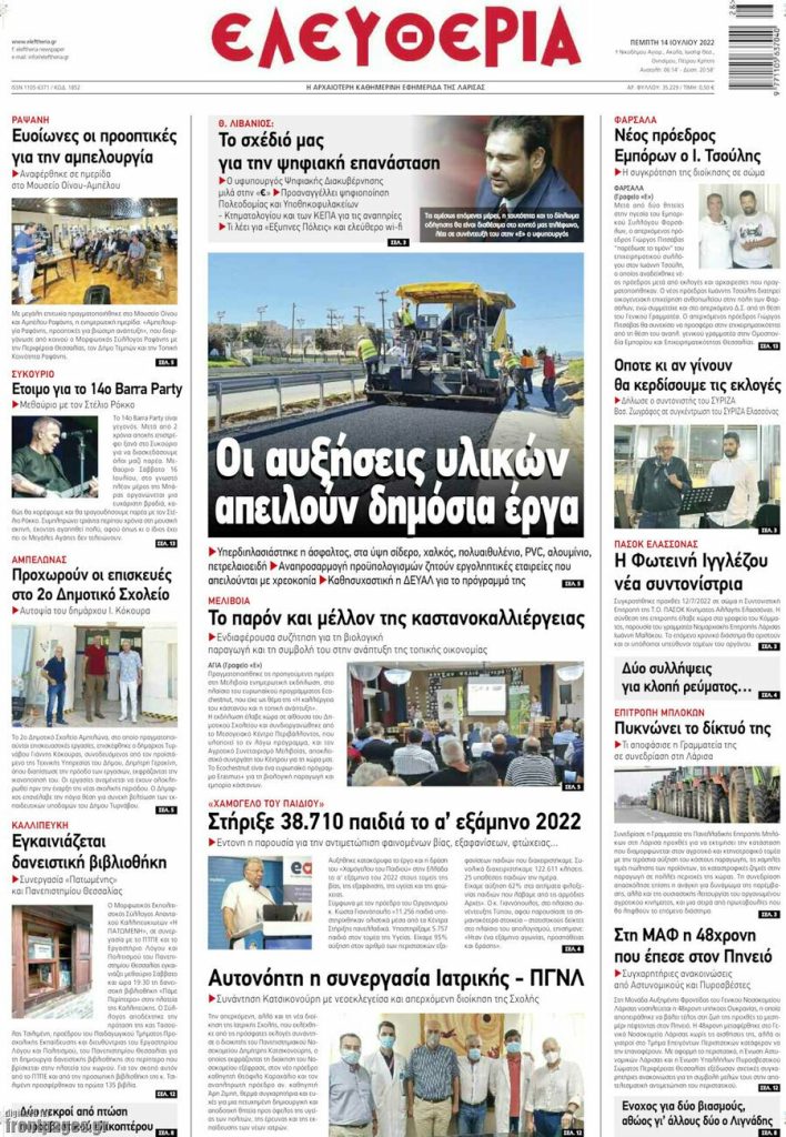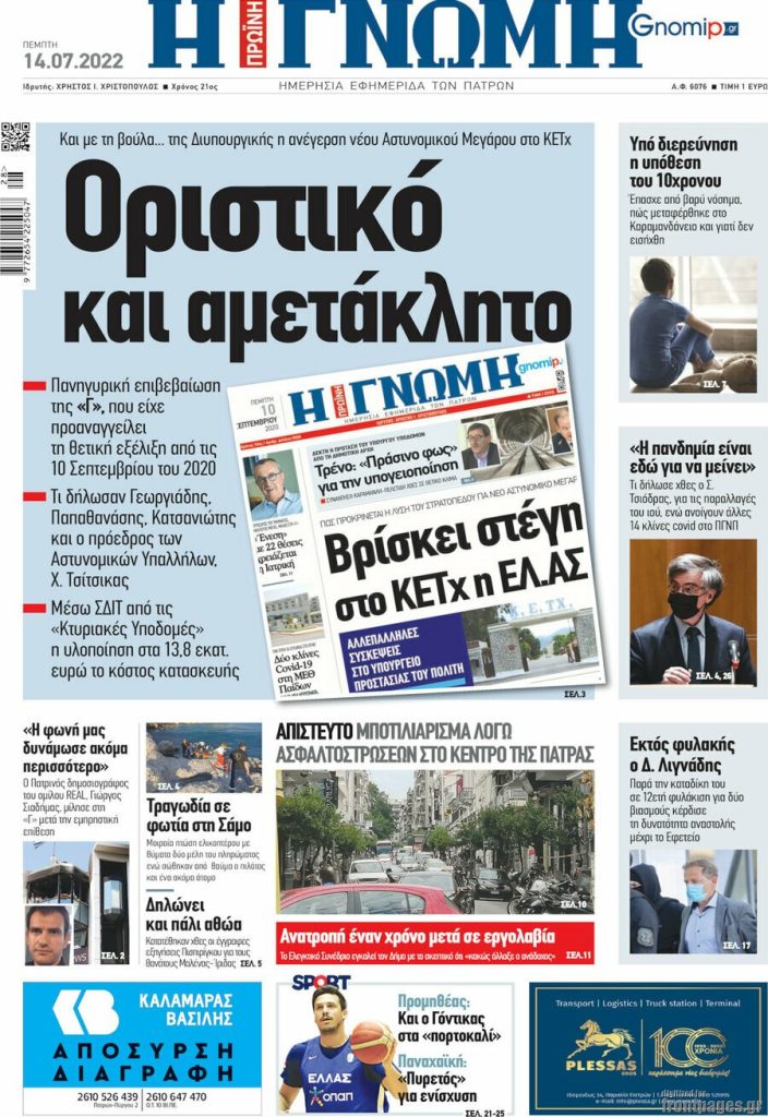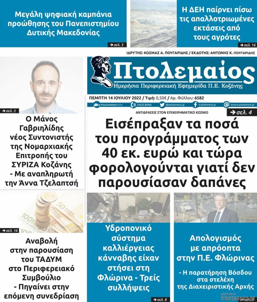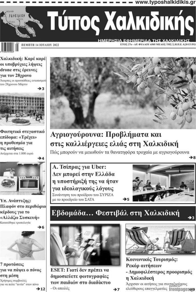 Διαβάστε τα πρωτοσέλιδα των σημερινών τοπικών εφημερίδων