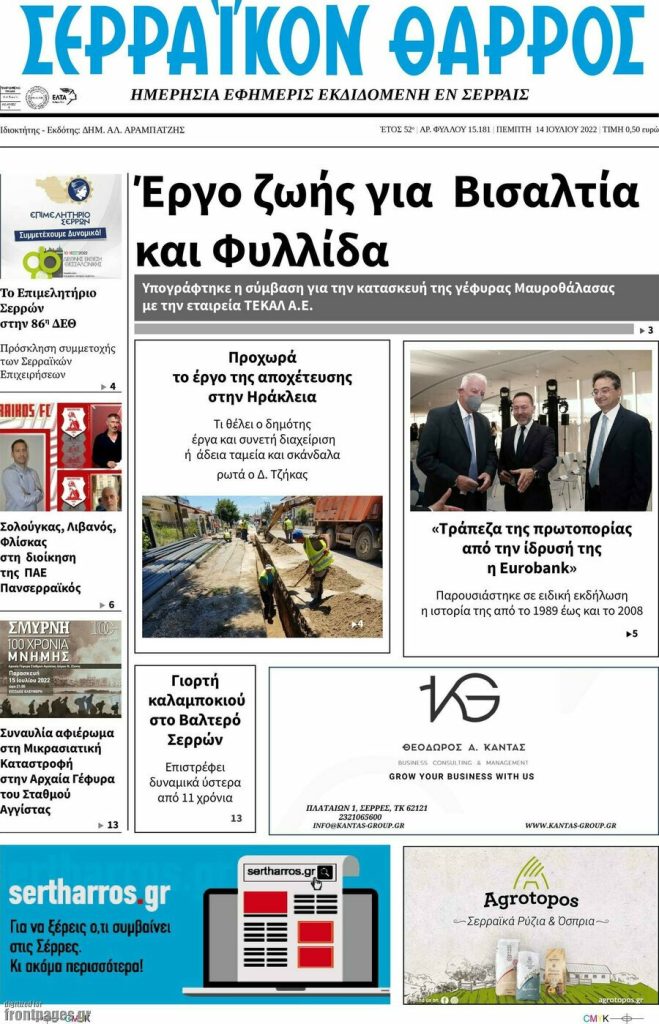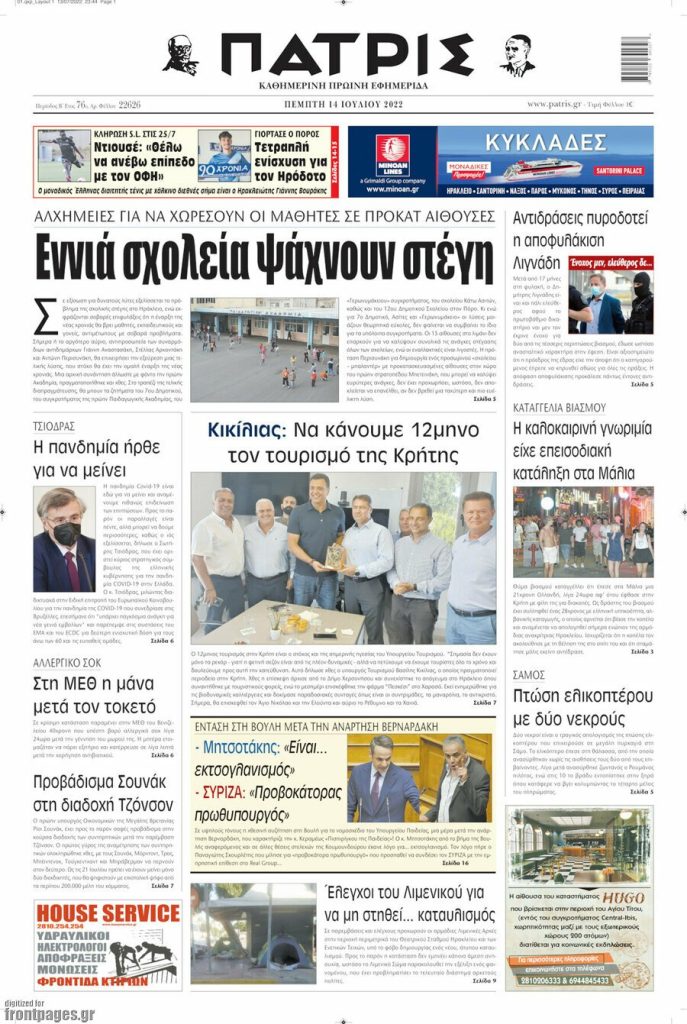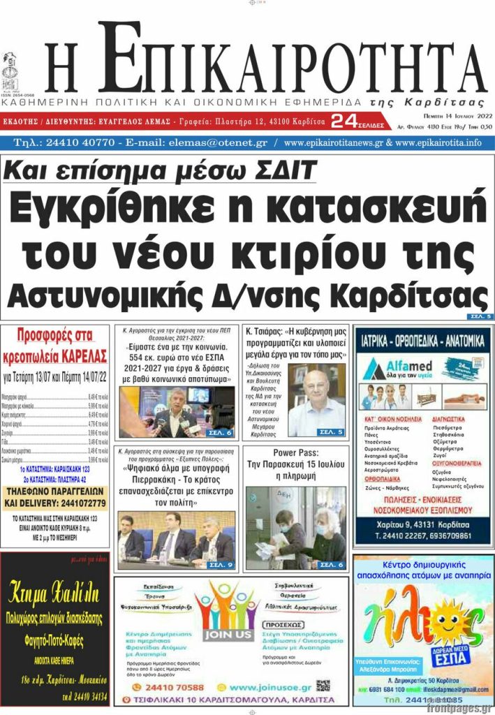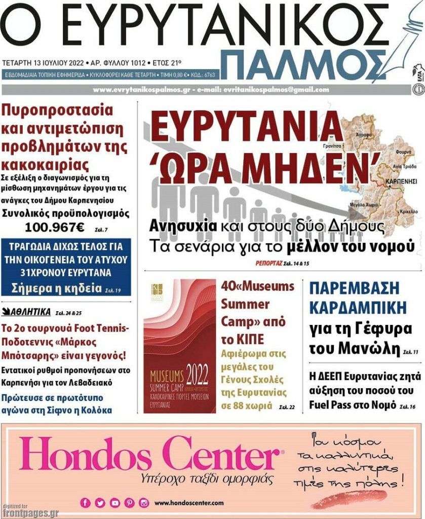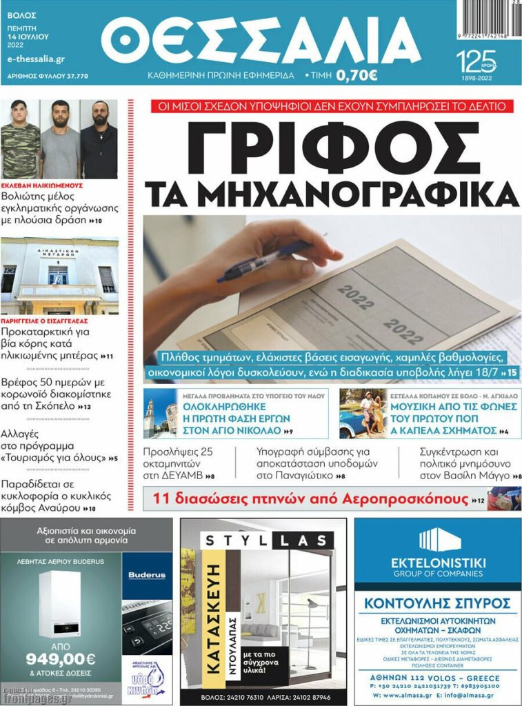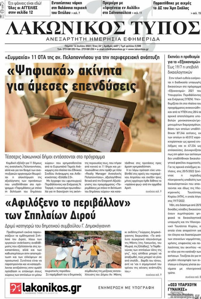 Διαβάστε τα πρωτοσέλιδα των σημερινών τοπικών εφημερίδων