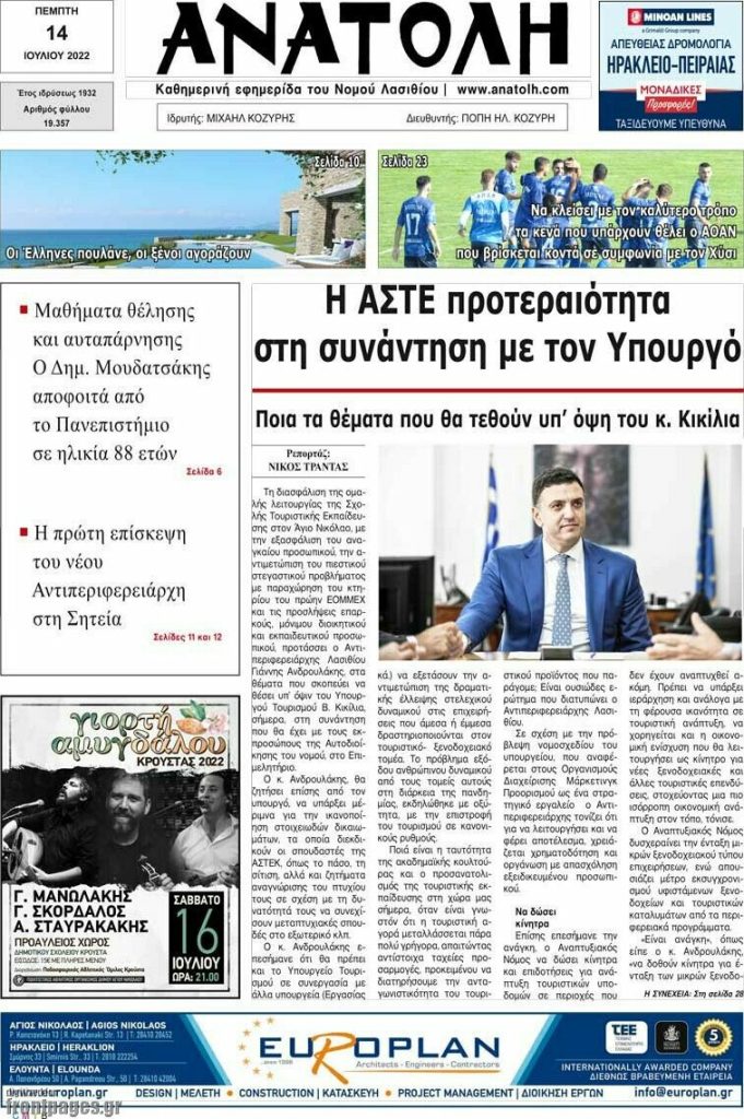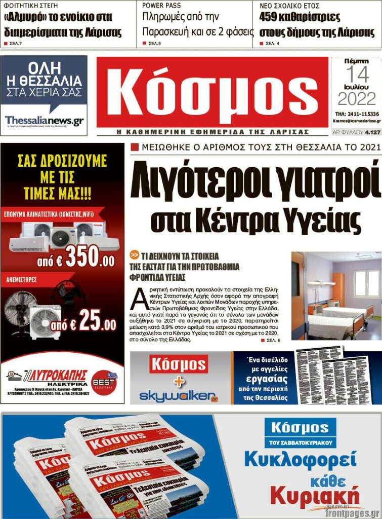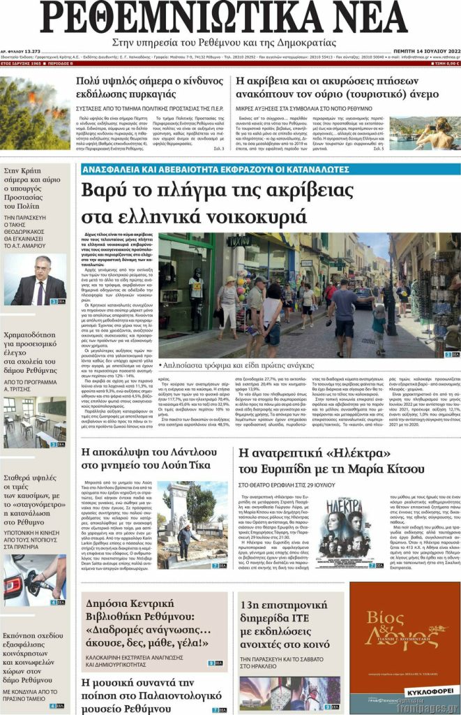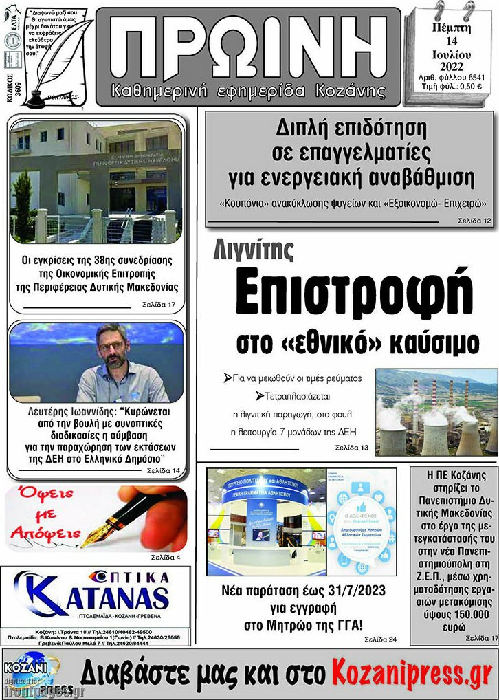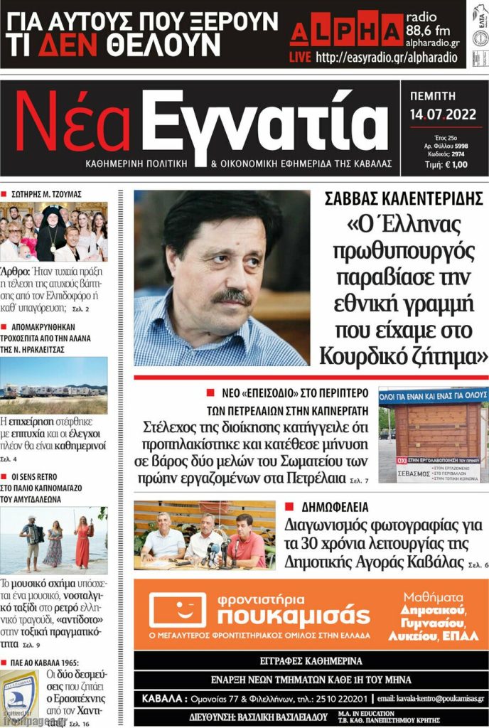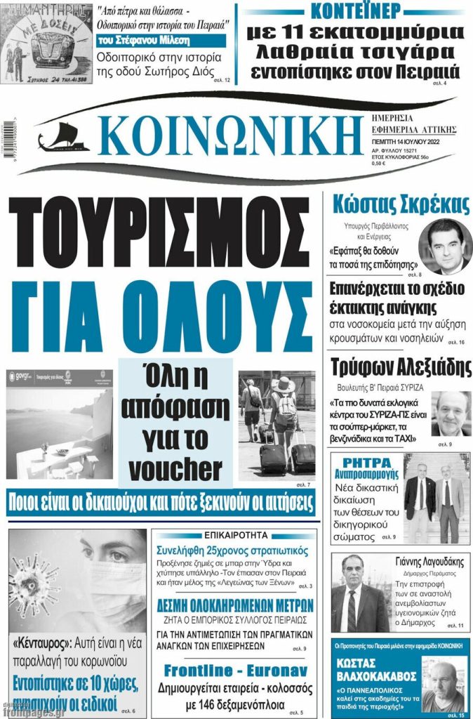 Διαβάστε τα πρωτοσέλιδα των σημερινών τοπικών εφημερίδων