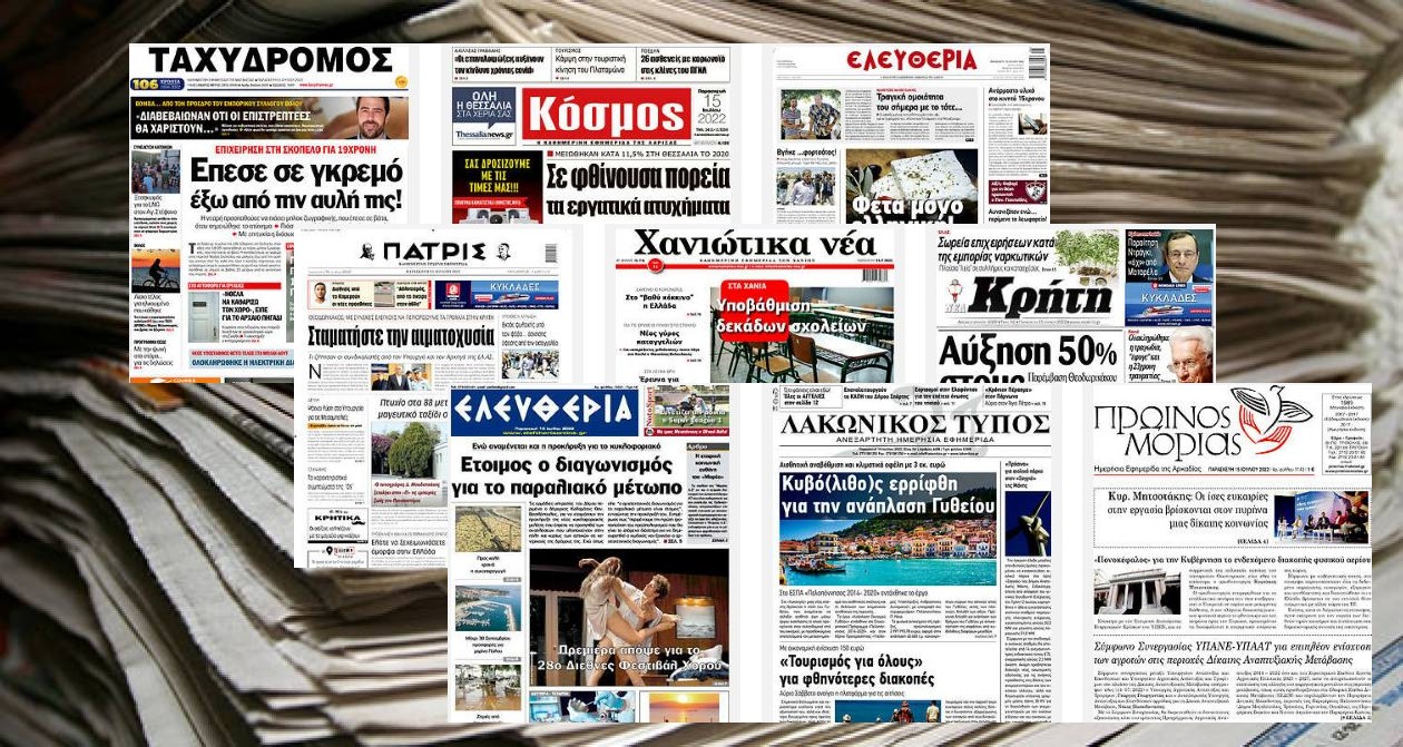 Διαβάστε τα πρωτοσέλιδα των σημερινών τοπικών εφημερίδων