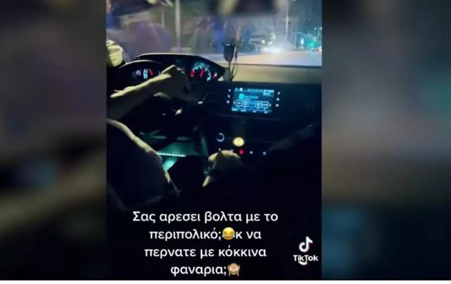 Το περιπολικό φαίνεται να κινείται στη λεωφόρο Ποσειδώνος με αναμμένους φάρους και σειρήνες. Λίγο πριν περάσει ένα κόκκινο φανάρι, ακούγονται γυναικείες φωνές από τα πίσω καθίσματα του περιπολικού από όπου κι έχουν καταγραφεί όλες οι εικόνες του βίντεο. Οι φωνές μιμούνται τη σειρήνα του περιπολικού που ηχεί εκείνη την ώρα και ξεσπούν σε γέλια όταν το όχημα αναπτύσσει ταχύτητα για να περάσει το κόκκινο φανάρι.