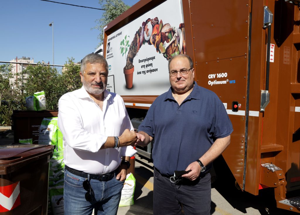 Με την παράδοση στον Δήμο Χαλανδρίου, 4 απορριμματοφόρων συλλογής στερεών αποβλήτων και 1100 καφέ κάδων ειδικής ανακύκλωσης, συνεχίζεται βάσει του σχεδιασμού ο κύκλος διανομής ειδικού εξοπλισμού συλλογής βιοαποβλήτων και ανακυκλώσιμων υλικών από την Περιφέρεια, σε δήμους της Αττικής.