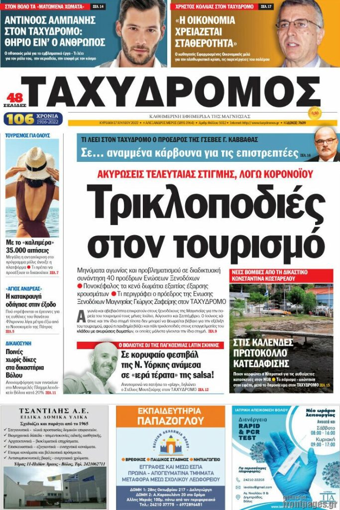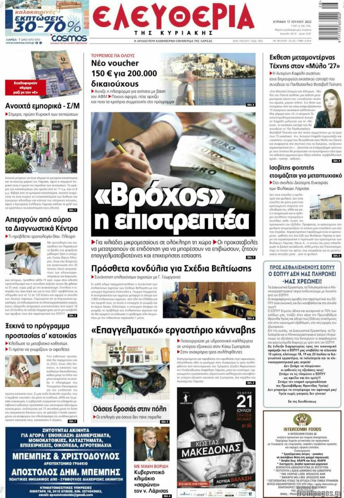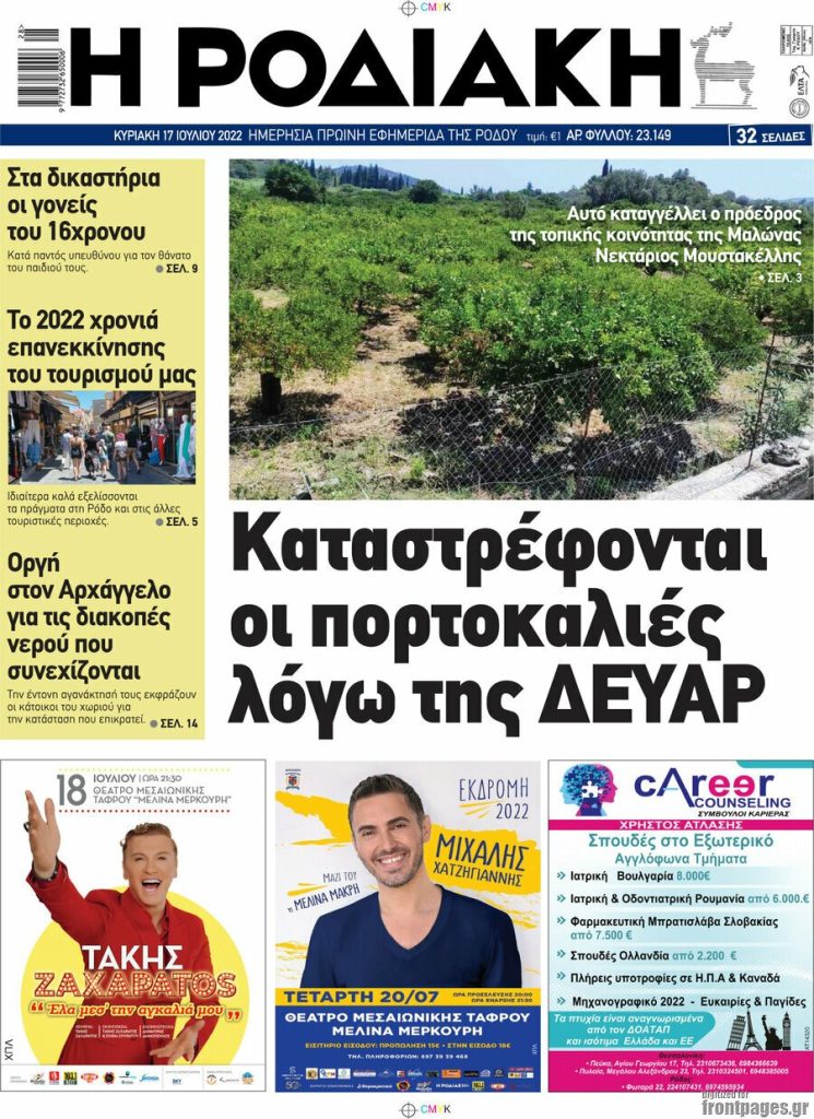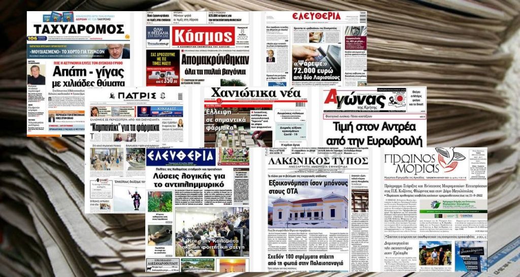 Κοινοποίηση Facebook Twitter LinkedIn Pinterest Email Copy Link Διαβάστε τα πρωτοσέλιδα των σημερινών τοπικών εφημερίδων