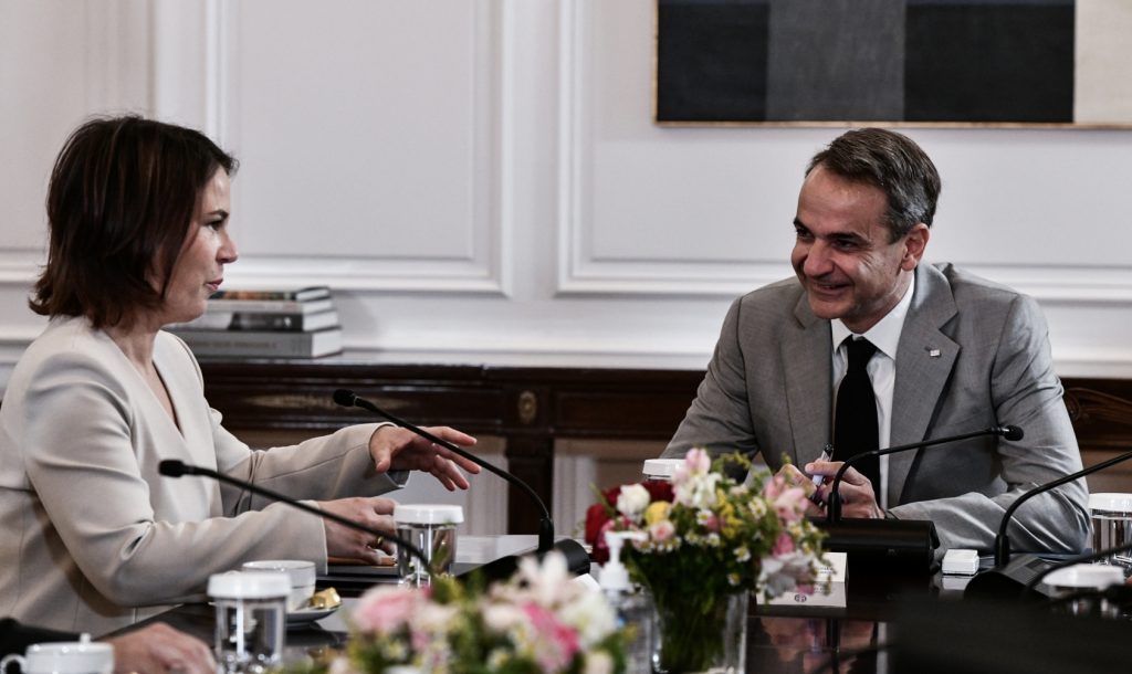 Συνάντηση με την Γερμανίδα υπουργό Εξωτερικών Αναλένα Μπέρμποκ είχε σήμερα στο Μέγαρο Μαξίμου ο πρωθυπουργός, Κυριάκος Μητσοτάκης.