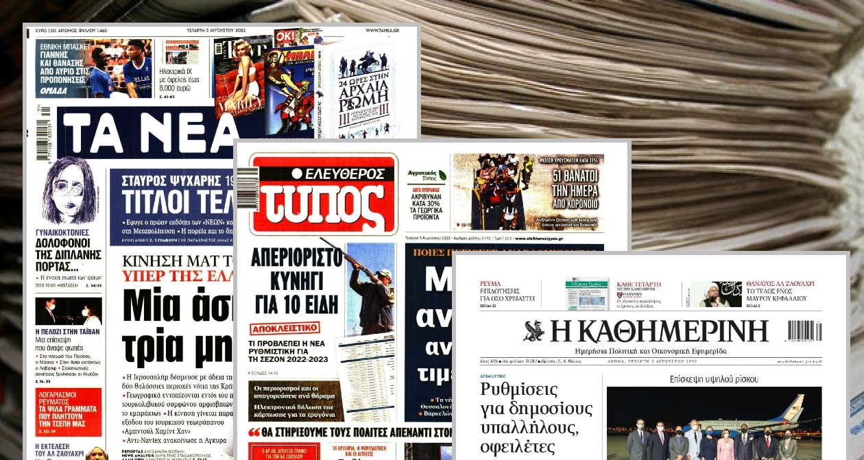 Κοινοποίηση Facebook Twitter LinkedIn Pinterest Email Copy Link Διαβάστε τα πρωτοσέλιδα των σημερινών εφημερίδων Εφημερίδες Πρωτοσέλιδα