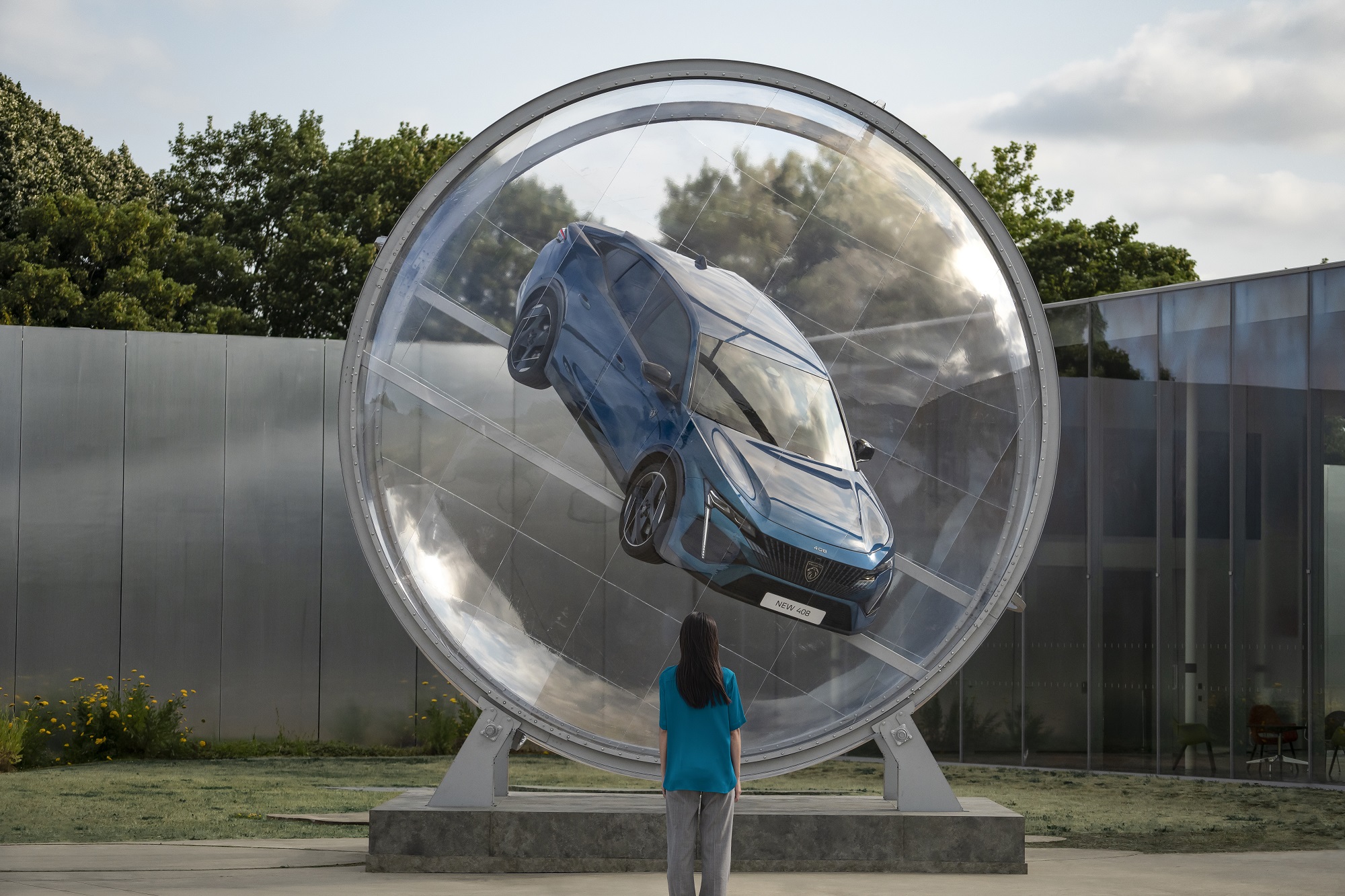 Περιστρέφεται και προβάλει το νέο Peugeot 408 από κάθε πιθανή γωνία: Η διάφανη σφαίρα που φιλοξενεί το νέο μοντέλο της Peugeot είναι παντελώς απροσδόκητη, όπως και η εμφάνιση του του νέου Peugeot 408.