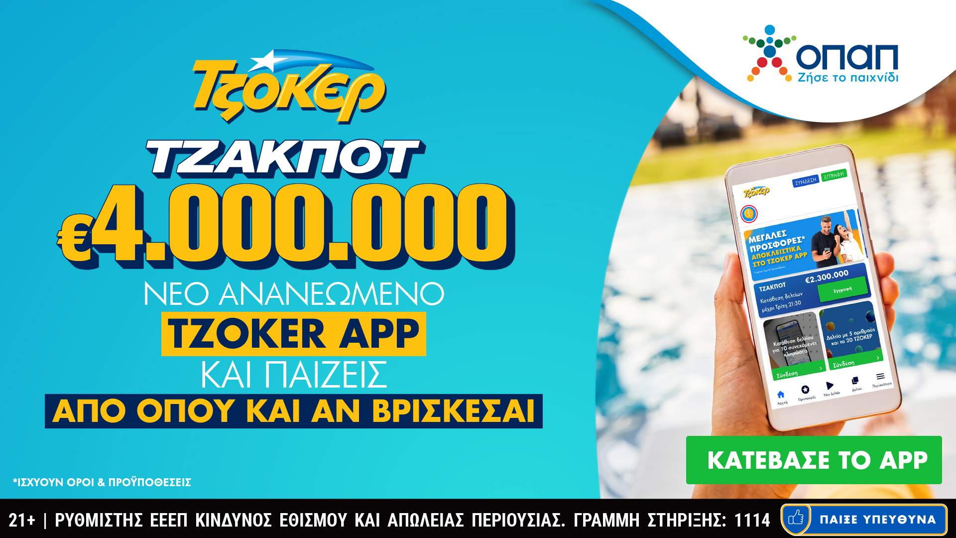 Εναλλακτικά, με την ανανεωμένη εφαρμογή ΤΖΟΚΕΡ στο κινητό τους τηλέφωνο, οι παίκτες μπορούν να συμπληρώνουν τα δελτία τους ανά πάσα στιγμή, ακόμη και όταν βρίσκονται στην παραλία.