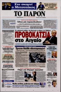 Το πολιτικό σκηνικό, όπως διαμορφώνεται μετά την υπόθεση των παρακολουθήσεων, τα ελληνοτουρκικά, η αύξηση των συντάξεων και η ακρίβεια ξεχωρίζουν μεταξύ άλλων θεμάτων στα πρωτοσέλιδα των κυριακάτικων εφημερίδων.