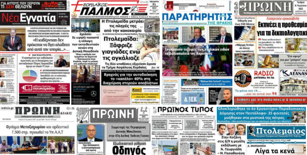 Δείτε τα πρωτοσέλιδα των σημερινών τοπικών εφημερίδων