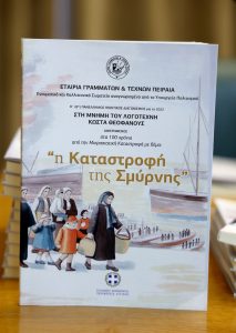 Στο πλαίσιο της εκδήλωσης παρουσιάστηκε το βιβλίο του Ποιητικού Διαγωνισμού με το θέμα «Η Καταστροφή της Σμύρνης», από την Εταιρεία Γραμμάτων και Τεχνών Πειραιά, το οποίο εκδόθηκε με τη στήριξη της Περιφέρειας και απονεμήθηκαν διακρίσεις στους συμμετέχοντες στο διαγωνισμό.