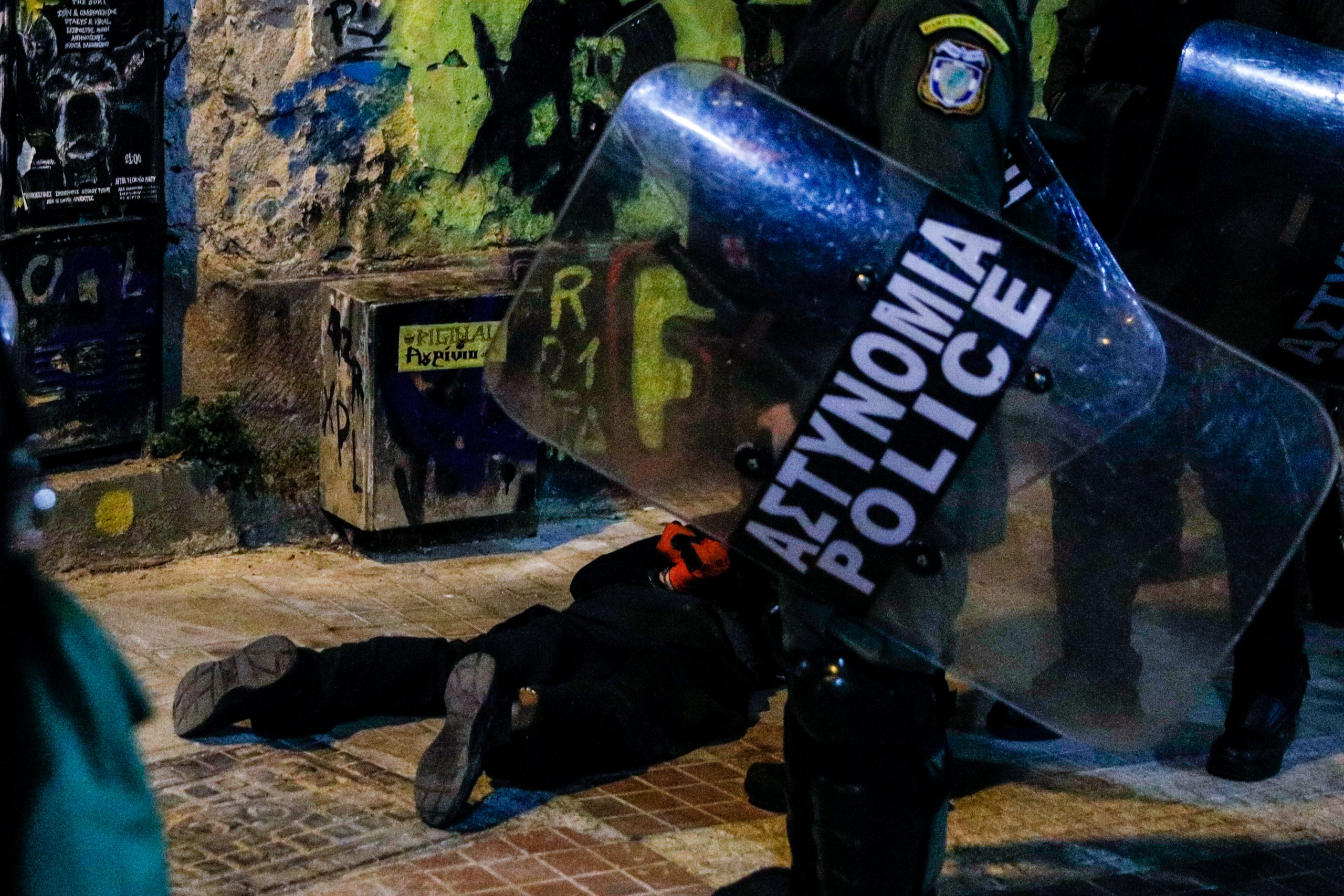 Σύμφωνα με την ΕΛΑΣ ομάδες ατόμων αποσπάστηκαν από την πορεία και επιτέθηκαν στις αστυνομικές δυνάμεις, που ήταν στο σημείο, με βόμβες μολότοφ και άλλα αντικείμενα, ενώ έστησαν οδοφράγματα στις οδούς γύρω από την πλατεία Εξαρχείων και έβαλαν φωτιά σε κάδους σκουπιδιών. Οι αστυνομικοί απάντησαν κάνοντας χρήση χημικών, ενώ προχώρησαν στην προσαγωγή δύο ατόμων και σε μία σύλληψη.
