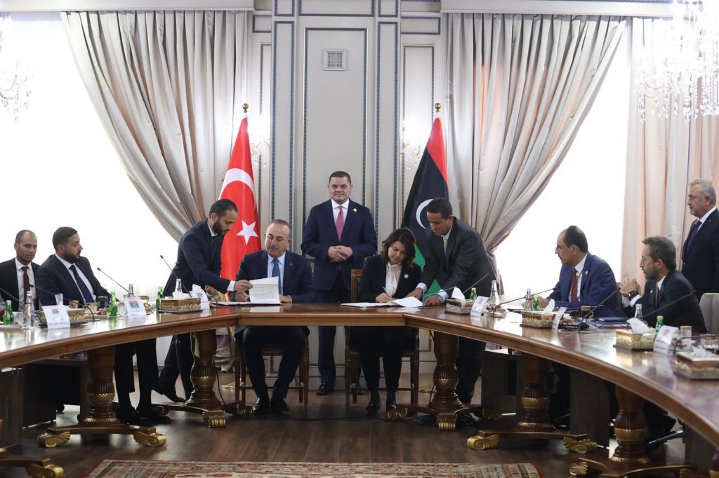 Ο υπουργός Εξωτερικών της Τουρκίας, Μεβλούτ Τσαβούσογλου, ο οποίος πραγματοποίησε επίσημη επίσκεψη στη Λιβύη με την αντιπροσωπεία υψηλού επιπέδου που τον συνοδεύει, παραχώρησε κοινή συνέντευξη Τύπου με την υπουργό Εξωτερικών της Λιβύης Νέκλα Μανγκούς, αμέσως μετά την υπογραφή συμφωνίας για έρευνες και γεωτρήσεις σε θάλασσα και ξηρά μεταξύ τουρκικών και λιβυκών εταιρειών.