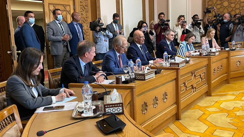 Νωρίτερα, κατά τη συνάντησή τους, συζήτησαν για την τουρκολιβυκή συμφωνία. Σύμφωνα με το υπουργείο Εξωτερικών, συζητήθηκαν επίσης οι διαχρονικές στρατηγικές σχέσεις Ελλάδας- Αιγύπτου, η Ανατολική Μεσόγειος και η Λιβύη.