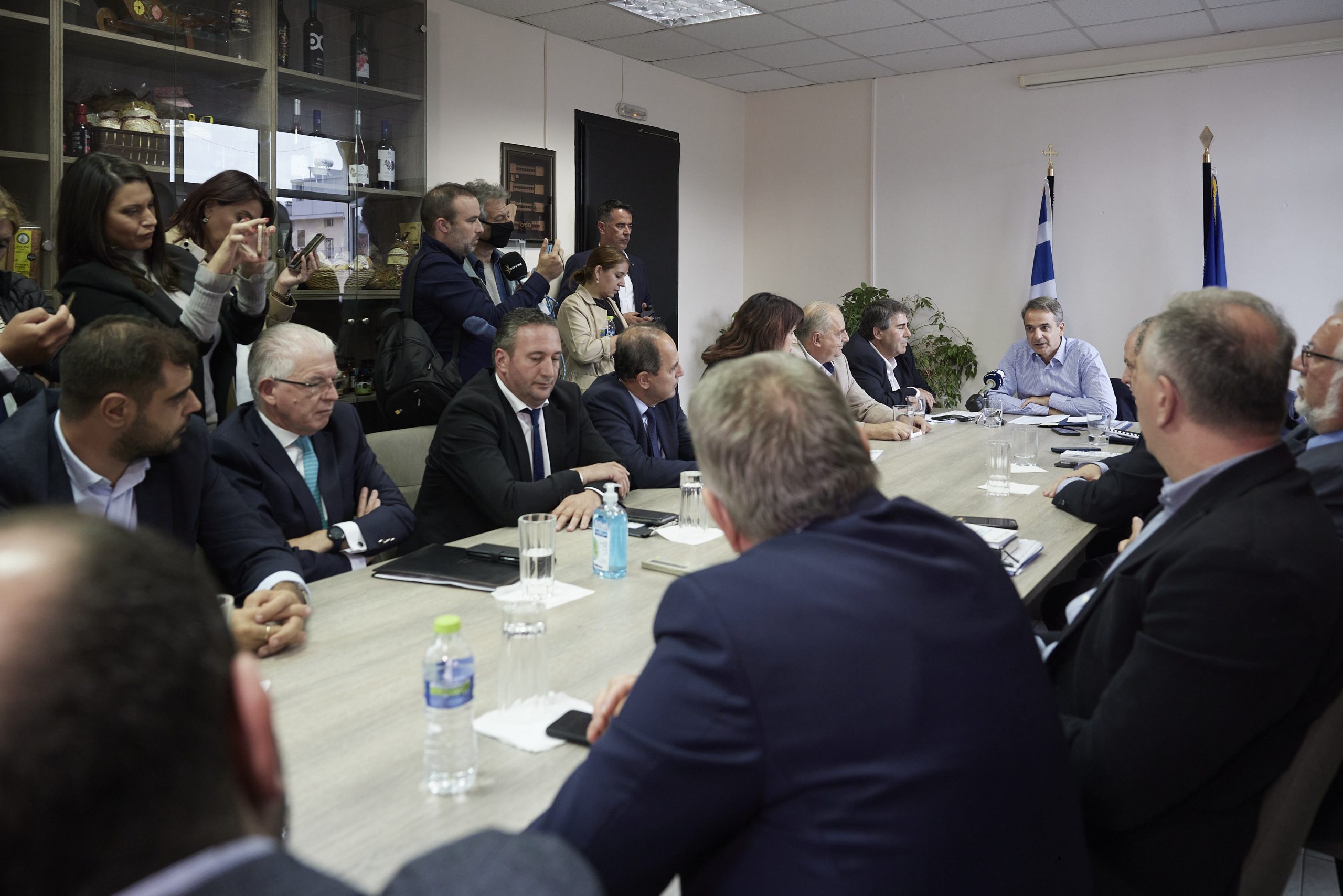 Στη σύσκεψη συμμετείχαν ο Υπουργός Αγροτικής Ανάπτυξης και Τροφίμων Γιώργος Γεωργαντάς, ο Αναπληρωτής Υπουργός Εσωτερικών αρμόδιος για Θέματα Αυτοδιοίκησης Στέλιος Πέτσας, ο Γενικός Γραμματέας Ενωσιακών Πόρων και Υποδομών του Υπουργείου Αγροτικής Ανάπτυξης και Τροφίμων Δημήτρης Παπαγιαννίδης, ο Πρόεδρος του ΕΛΓΑ Ανδρέας Λυκουρέντζος, ο Αντιπεριφερειάρχης για την ΠΕ Πέλλας Ιορδάνης Τζαμτζής, ο Δήμαρχος Έδεσσας Δημήτρης Γιάννου, ο Δήμαρχος Αλμωπίας Χρήστος Μπάτσης, η Δήμαρχος Σκύδρας Κατερίνα Ιγνατιάδου, ο Δήμαρχος Πέλλας Γρηγόρης Στάμκος, οι βουλευτές Πέλλας της Νέας Δημοκρατίας Γιώργος Καρασμάνης, Διονύσης Σταμενίτης και Λάκης Βασιλειάδης, η Διευθύντρια του Γραφείου του Πρωθυπουργού στη Θεσσαλονίκη Μαρία Αντωνίου, ο Γραμματέας της Πολιτικής Επιτροπής της ΝΔ Παύλος Μαρινάκης, και ο Διευθυντής του Γραφείου Προέδρου της ΝΔ και Γραμματέας Οργανωτικού Στέλιος Κονταδάκης.