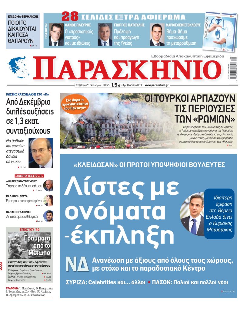 Μη χάσετε το Σάββατο 29 Οκτωβρίου το «ΠΑΡΑΣΚΗΝΙΟ», που κυκλοφορεί με ρεπορτάζ, έρευνες και παρεμβάσεις οι οποίες θα συζητηθούν.
