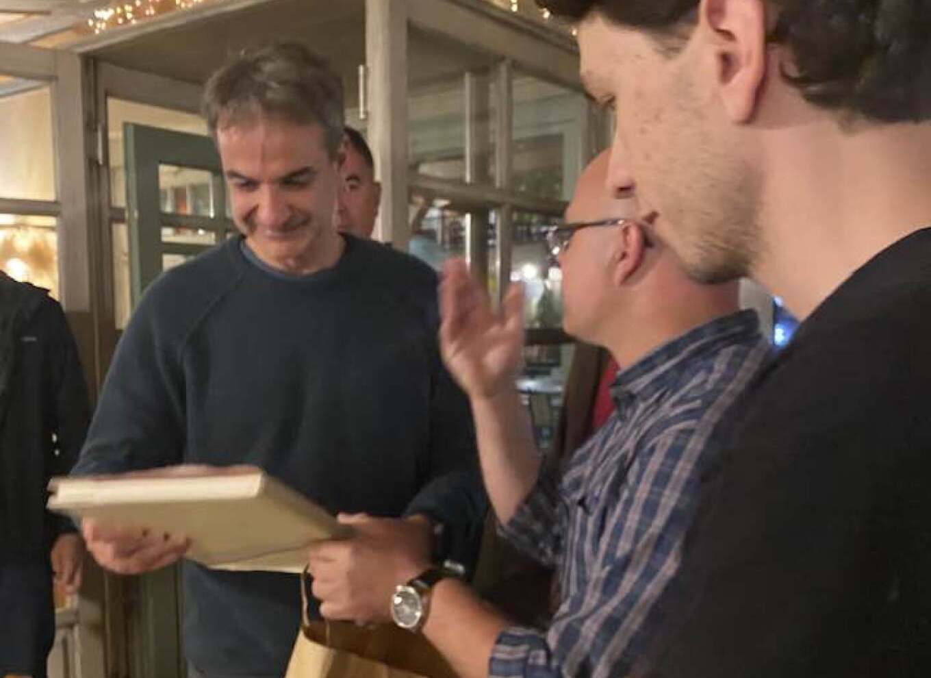 Εκείνοι του προσέφεραν δώρα και τοπικά προϊόντα με τον πρωθυπουργό να φωτογραφίζεται με μικρούς και μεγάλους.