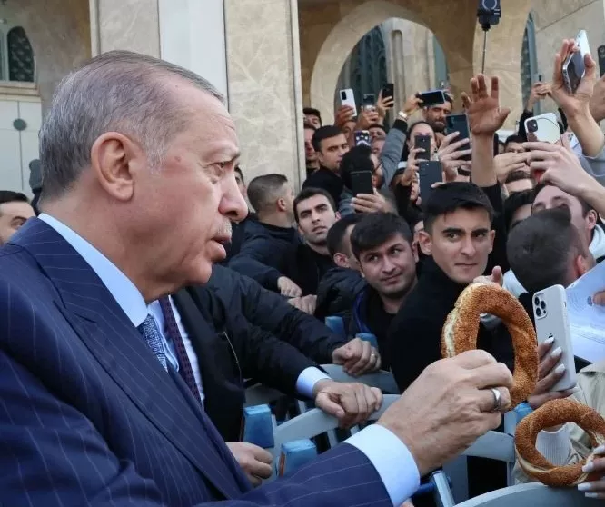 Μόλις βγήκε από το τζαμί, ο Τούρκος πρόεδρος βλέποντάς τους, κατευθύνθηκε σε έναν κουλουρά της πλατείας, πήρε κουλούρια και άρχισε να τα μοιράζει στο συγκεντρωμένο πλήθος, έχοντας και μια σύντομη συνομιλία με πολίτες.