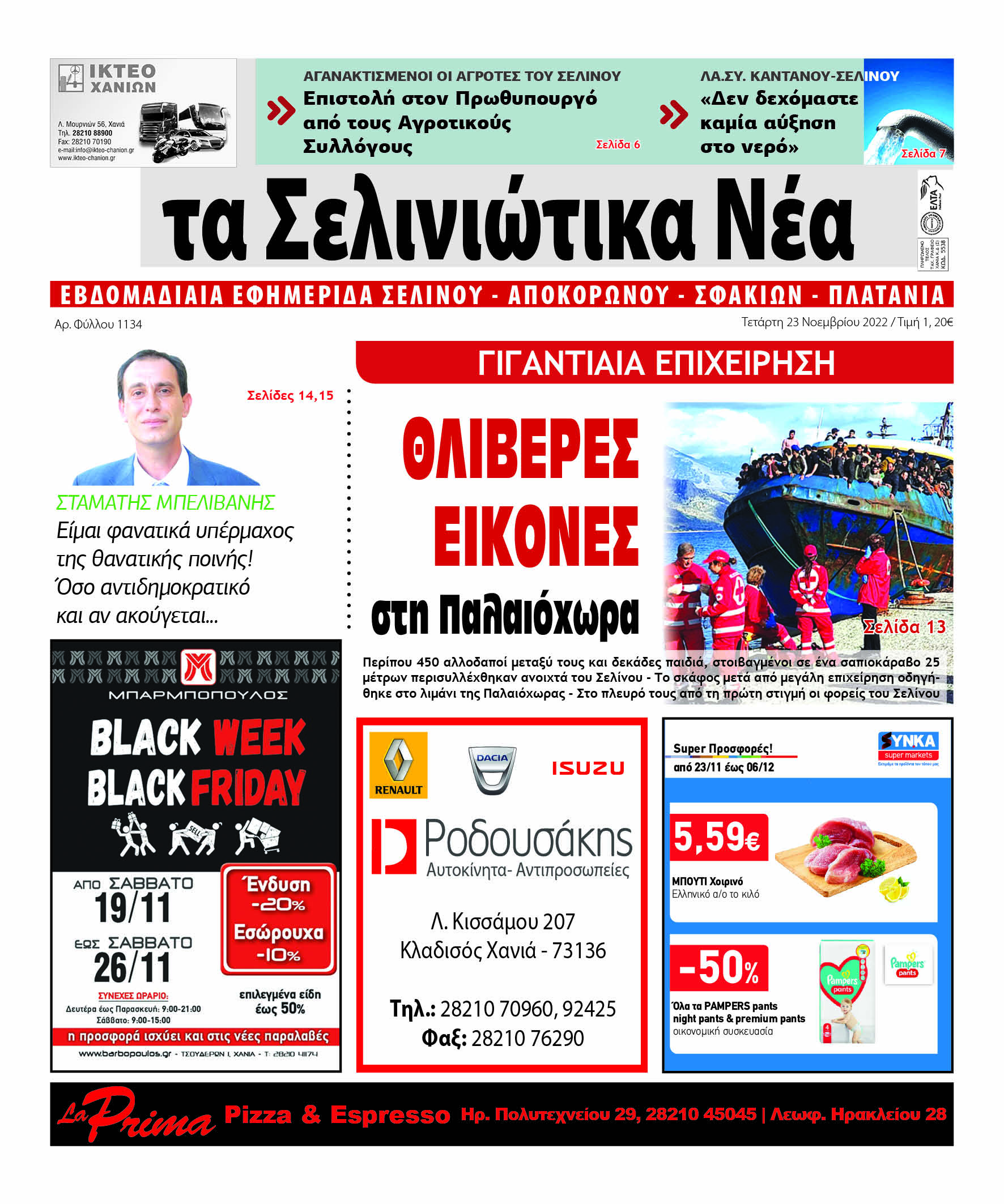 Κοινοποίηση Facebook Twitter LinkedIn Pinterest Email Copy Link Δείτε το πρωτοσέλιδο της τοπικής εφημερίδας «Σελινιώτικα Νέα» "Σελινιώτικα Νέα"