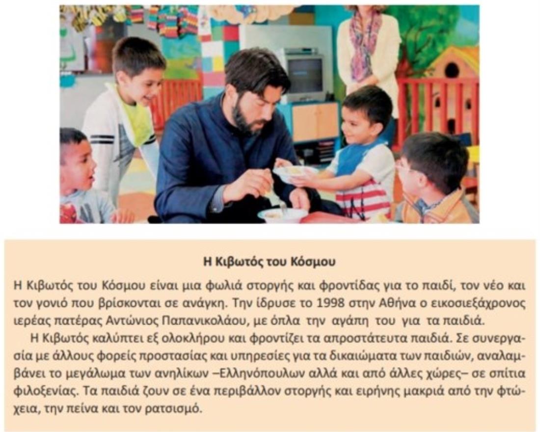 Η «Κιβωτός του Κόσμου» στο συγκεκριμένο πεδίο του βιβλίου της Γ’ Γυμνασίου, χαρακτηρίζεται ως «φωλιά στοργής και φροντίδας για το παιδί».