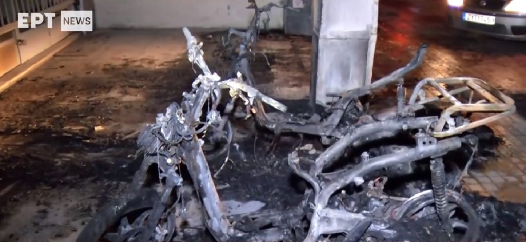 Σύμφωνα με την ΕΛΑΣ, το περιστατικό σημειώθηκε περίπου στις 05:00 όταν άγνωστοι δράστες έβαλαν φωτιά σε τρία μηχανάκια που ήταν σταθμευμένα στην οδό Αγίας Ζώνης 50.