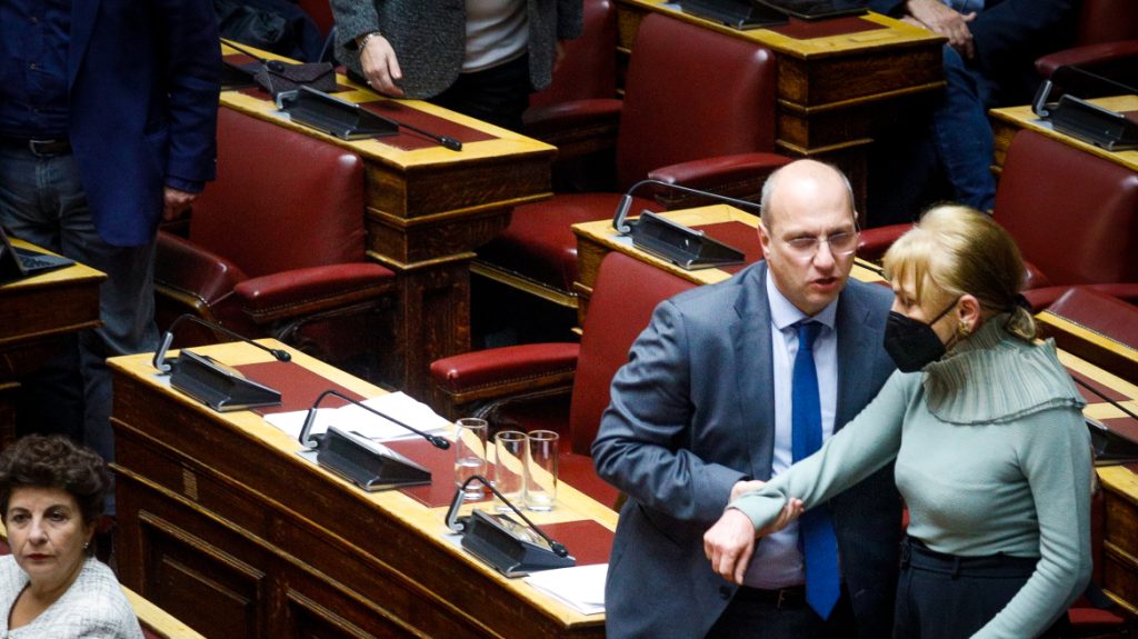 Η Φωτεινή Πιπιλή, σηκώθηκε από τη θέση της στα δεξιά έδρανα και κατευθύνθηκε στην πτέρυγα του ΣΥΡΙΖΑ προκειμένου να ζητήσει εξηγήσεις.
