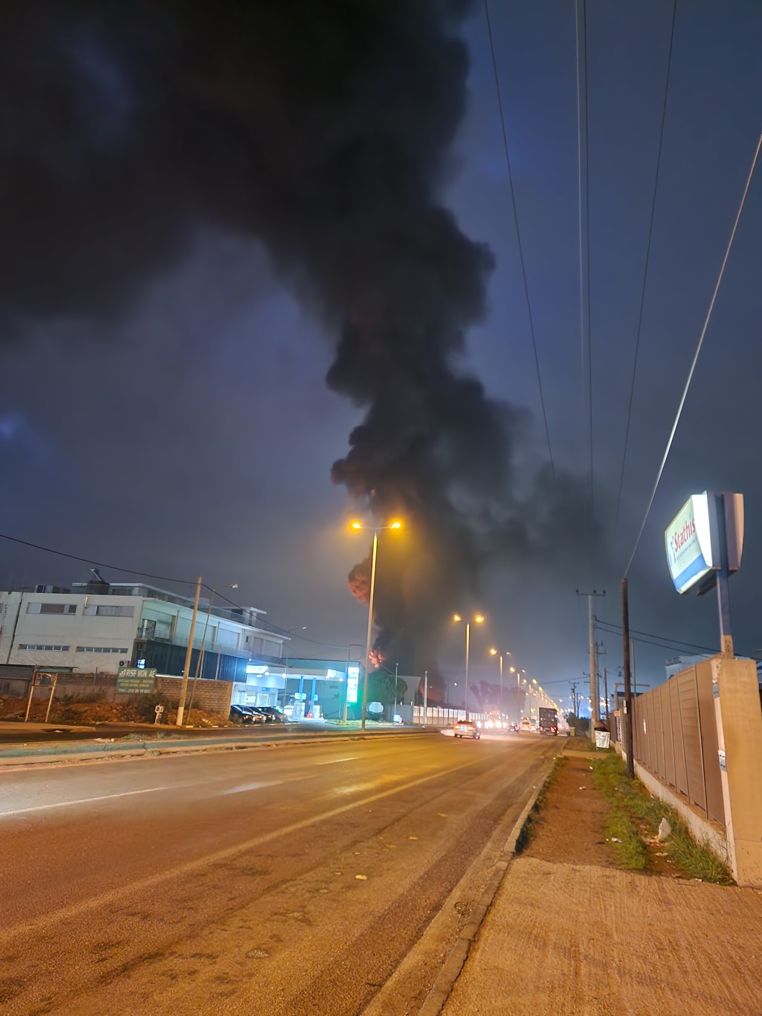 Λόγω της καύσιμης ύλης, μάλιστα, εστάλη και μήνυμα από το 112 στους κατοίκους της περιοχής για να προστατευτούν από τον επικίνδυνο καπνό.