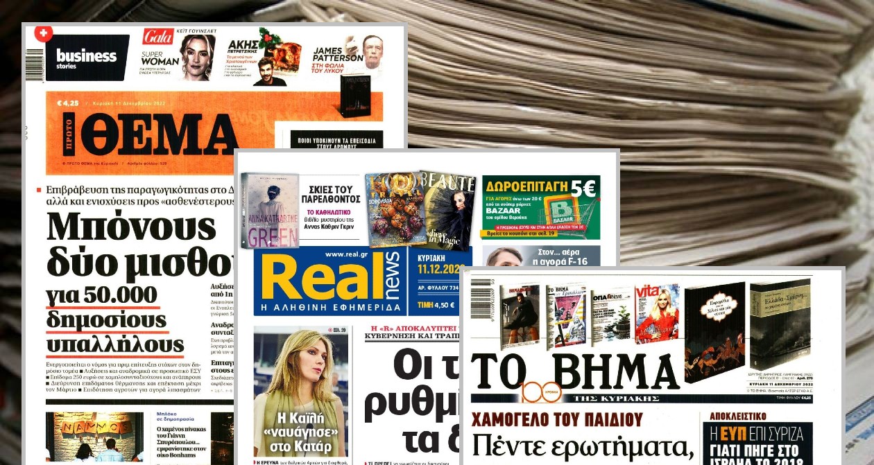 Κοινοποίηση Facebook Twitter LinkedIn Pinterest Email Copy Link Διαβάστε τα πρωτοσέλιδα των σημερινών εφημερίδων κυριακάτικες εφημερίδες Πρωτοσέλιδα