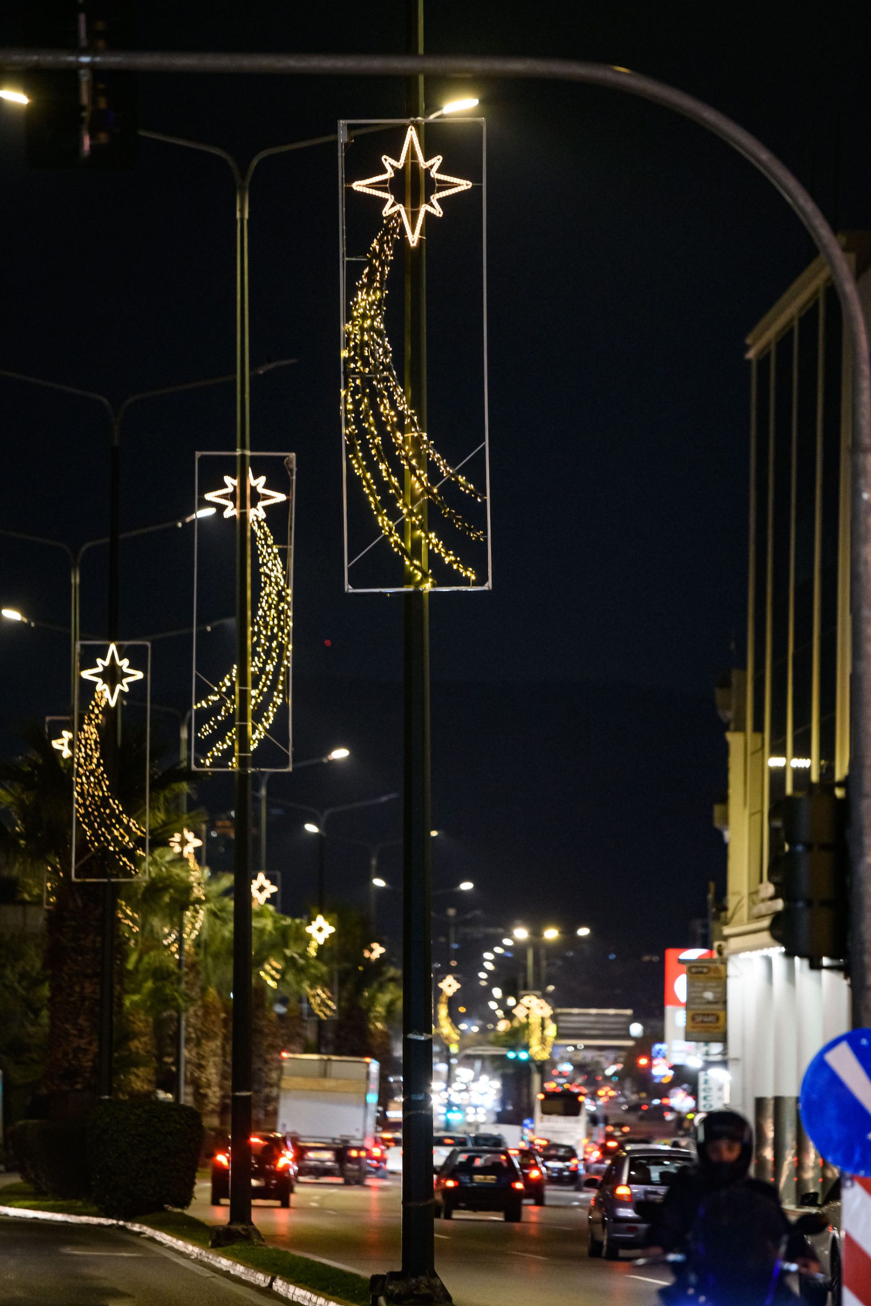 Οι πλατείες και οι δρόμοι στολίστηκαν, οι κολώνες των δρόμων ντύθηκαν. Επίγεια και εναέρια φωτεινά και γιορτινά στολίδια: δεντράκια, αστέρια, φωτεινή βροχή, παραδοσιακά καραβάκια, χριστουγεννιάτικες μπάλες και φωτεινά μπαλόνια κάνουν την πόλη μαγική, μέρα και νύχτα.