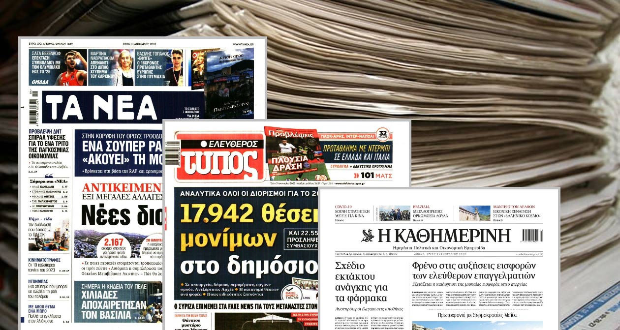 Κοινοποίηση Facebook Twitter LinkedIn Pinterest Email Copy Link Διαβάστε τα πρωτοσέλιδα των σημερινών εφημερίδων Εφημερίδες Πρωτοσέλιδα