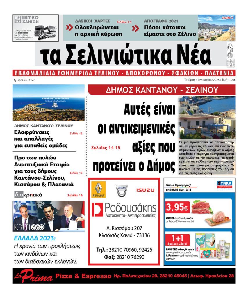 Κοινοποίηση Facebook Twitter LinkedIn Pinterest Email Copy Link Δείτε το πρωτοσέλιδο της τοπικής εφημερίδας «Σελινιώτικα Νέα» "Σελινιώτικα Νέα"