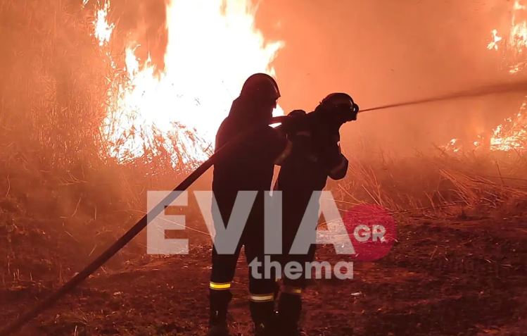 Μαίνεται η πυρκαγιά που ξέσπασε χθες το απόγευμα στην περιοχή του υδροβιότοπου Κολοβρέχτη στα Ψαχνά της Εύβοιας. Μέχρι τα μεσάνυχτα οι πυροσβεστικές δυνάμεις και οι εθελοντές έδιναν μάχη με τις φλόγες και κατάφεραν να περιορίσουν τα μέτωπα, ωστόσο η φωτιά συνεχίζει να καίει ανεξέλεγκτη σε δύσβατη περιοχή μέσα στον υγροβιότοπο.
