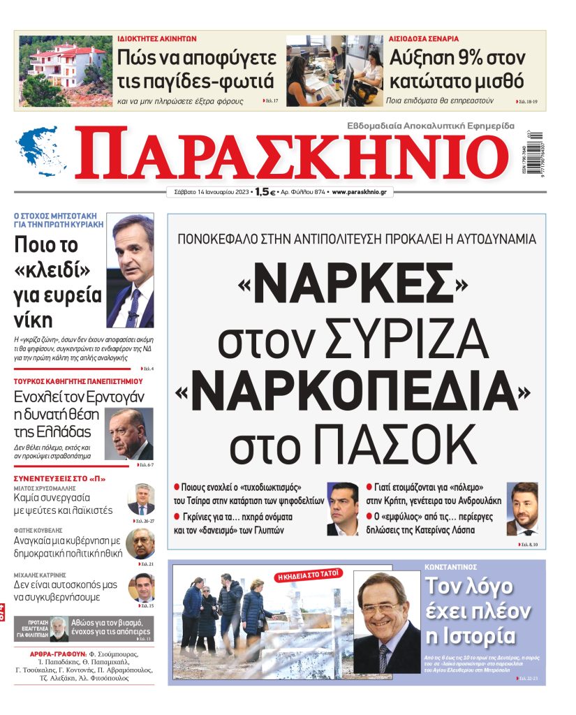Μη χάσετε το Σάββατο 14 Ιανουαρίου το «ΠΑΡΑΣΚΗΝΙΟ», που κυκλοφορεί με ρεπορτάζ, έρευνες και παρεμβάσεις οι οποίες θα συζητηθούν.