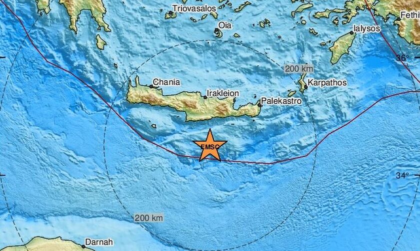 Σεισμική δόνηση 4,1 βαθμών της κλίμακας Ρίχτερ σημειώθηκε στις 05:31 το πρωί της Παρασκευής στον θαλάσσιο χώρο 36 χιλιόμετρα νότια από τον παραθαλάσσιο οικισμό Τσούτσουρος του νομού Ηρακλείου στη νότια Κρήτη.