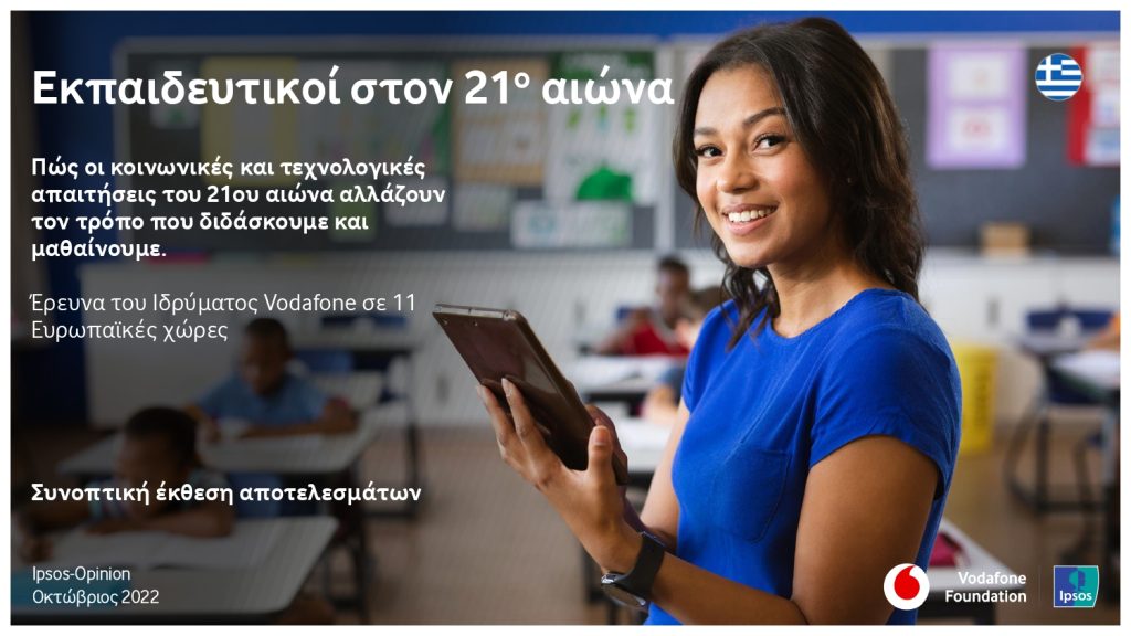 Σύμφωνα με έρευνα που διενήργησε η IPSOS για λογαριασμό του Ιδρύματος Vodafone, οι λειτουργοί της πρωτοβάθμιας και της δευτεροβάθμιας εκπαίδευσης στην Ελλάδα θεωρούν ότι στην πλειονότητά τους διαθέτουν πολύ καλά επίπεδα δεξιοτήτων στην πληροφορική, με αποτέλεσμα η χώρα μας να αποκτά μία ιδιαίτερα υψηλή θέση στην Ευρώπη.