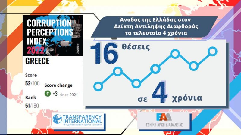 “Η Ελλάδα καταλαμβάνει πλέον την 51η θέση μεταξύ 180 χωρών και συμπεριλαμβάνεται στο 30% των χωρών με τα καλύτερα αποτελέσματα στην καταπολέμηση της διαφθοράς παγκοσμίως, βελτιώνοντας την κατάταξή της κατά 16 ολόκληρες θέσεις από το 2019 έως σήμερα.