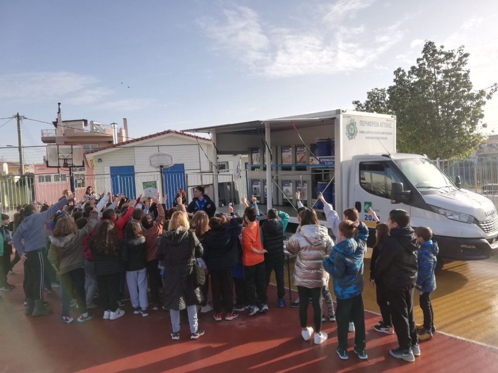 Ιδιαίτερα για τους μαθητές των σχολείων, το πρόγραμμα περιλαμβάνει διαδραστικές ερωτοαπαντήσεις, για την ανακύκλωση και τη σημαντικότητα της. Ακόμη, γίνεται ενημέρωση και ευαισθητοποίηση από το εξειδικευμένα στελέχη για το Πρόγραμμα Επιβράβευσης της Περιφέρειας Αττικής τονίζοντας τα οφέλη, αλλά και τη δυνατότητα να ανακυκλώνουν τα διαχωρισμένα υλικά 8 κατηγοριών (Χαρτί/Χαρτόνι, Πλαστικά, Μεταλλικά Αντικείμενα, Αλουμίνιο, Γυαλί, Ηλεκτρονικός/Ηλεκτρικός Εξοπλισμός, Βρώσιμα Έλαια & Λίπη, καθώς και Ρούχα/Υφάσματα).