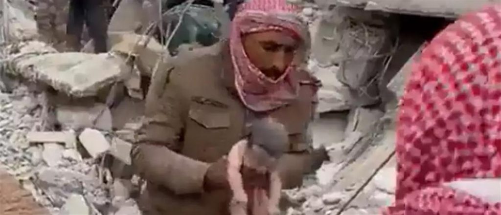 Στο βίντεο που ανάρτησε στο twitter δημοσιογράφος, φαίνεται ένας άντρας να μεταφέρει το νεογέννητο μωράκι που ανασύρθηκε κάτω από τα χαλάσματα και να τρέχει για να το μεταφέρει σε ασφαλές μέρος.