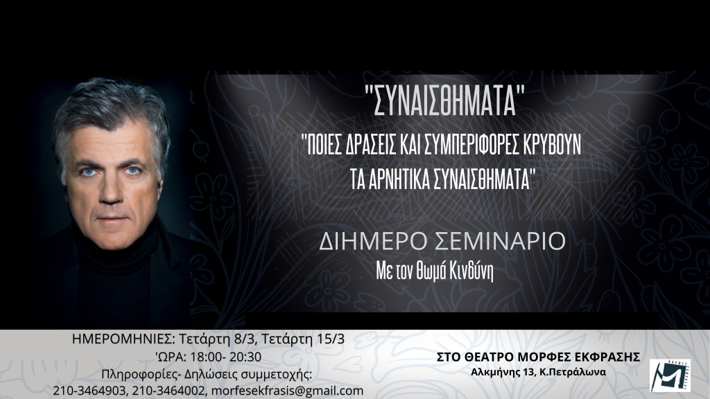 Κατά τη διάρκεια του σεμιναρίου θα γίνει προβολή κινηματογραφικών σκηνών από το παγκόσμιο ρεπερτόριο με σκοπό την αναγνώριση και την κατανόηση των συναισθημάτων και των αντίστοιχων δράσεών τους.