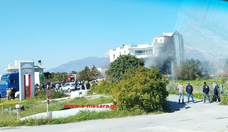Νεκρός εντοπίστηκε ένας άνδρας, μέσα στην αντιπροσωπεία αυτοκινήτων στο Τυμπάκι, καθώς το κτίριο τυλίχθηκε στις φλόγες λίγο πριν από τις 12.00 το μεσημέρι.