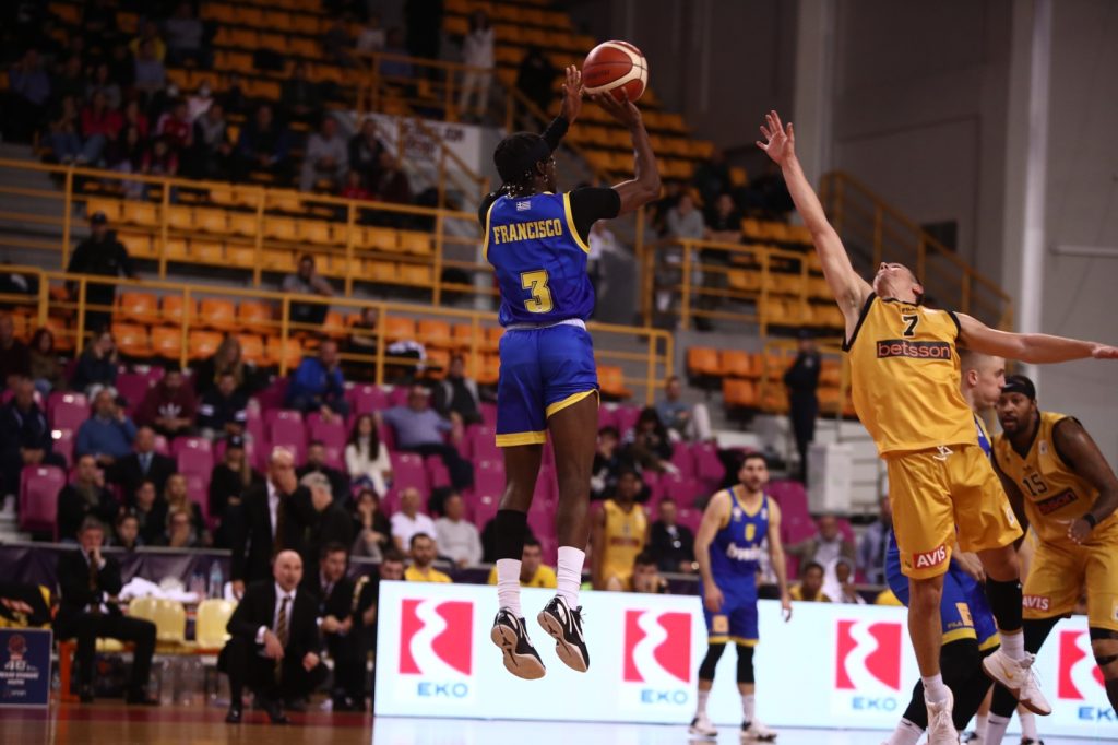 Το Περιστέρι ήταν ο μεγάλος θριαμβευτής στον πρώτο ημιτελικό του 48ου Κυπέλλου Ελλάδας στο μπάσκετ, επικρατώντας της ΑΕΚ με 77-65 στα «Τρία Αοράκια» του Ηρακλείου χάρις στη «μαγική» εμφάνιση του Σιλβέν Φρανσίσκο (33π., 4/8τριπ.), ο οποίος πήρε «φωτιά» στο δεύτερο ημίχρονο και οδήγησε την ομάδα των δυτικών προαστίων για πρώτη φορά στην ιστορία της στον τελικό.