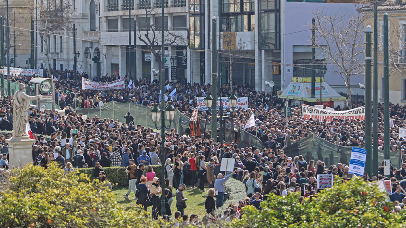 «Το έγκλημα αυτό δεν θα συγκαλυφθεί. Σύγχρονες-Ασφαλείς-Φθηνές Μαζικές Μεταφορές για τον λαό. Κόντρα στην εγκληματική πολιτική του κέρδους» είναι το σύνθημα που δεσπόζει στην μεγάλη απεργιακή συγκέντρωση Εργατικών Κέντρων, Ομοσπονδιών, Σωματείων, μαζικών φορέων, φοιτητών και μαθητών στα Προπύλαια για το πολύνεκρο σιδηροδρομικό δυστύχημα στα Τέμπη.