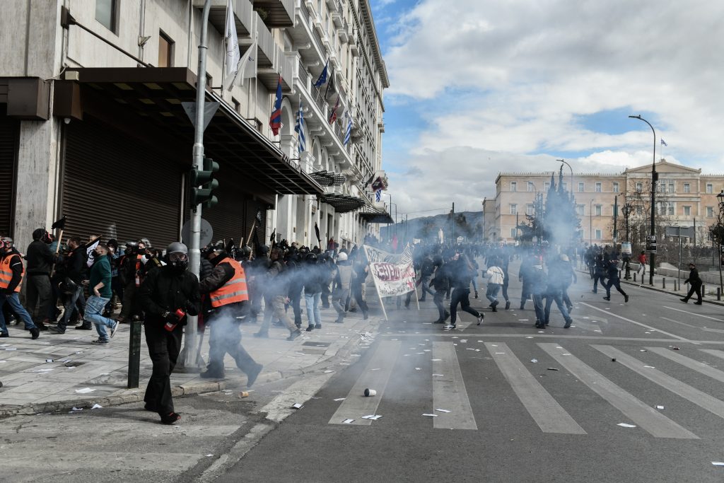 Επεισόδια σημειώθηκαν πριν από λίγο στην πλατεία Συντάγματος όπου ομάδα αγνώστων συγκρούστηκε με τις αστυνομικές δυνάμεις. Οι άγνωστοι πετάξαν βόμβες μολότοφ, πέτρες και άλλα αντικείμενα προς τους αστυνομικούς, που απάντησαν κάνοντας χρήση χημικών.