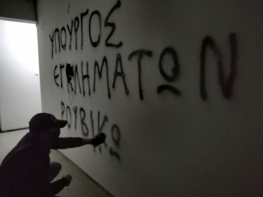 Τα μέλη της αναρχικής συλλογικότητας έγραψαν συνθήματα στους τοίχους έξω από το γραφείο του τέως υπουργού Μεταφορών.