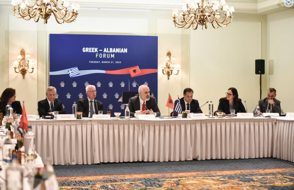 Ανέδειξε, επίσης, τη σημασία του να κάνουμε τα απαραίτητα βήματα για τις Ελληνο-Αλβανικές οικονομικές σχέσεις. “Πολιτικά είμαστε σε ένα πολύ καλό επίπεδο, τα μεταξύ μας ζητήματά μας αντιμετωπίζονται με δέσμευση και από τις δύο πλευρές, με κοινή αντίληψη ότι πρέπει να λύσουμε τις διαφορές μας και ότι κανείς άλλος δεν θα το κάνει για εμάς”, σημείωσε επισημαίνοντας ότι επίλυση των διαφορών μας έρχεται με την εμβάθυνση των σχέσεων μεταξύ των ανθρώπων και των επιχειρήσεών μας. Επισήμανε, δε, πως ο Έλληνας Πρωθυπουργός τον προσκάλεσε να συμμετάσχει στο Οικονομικό Φόρουμ των Δελφών, που θα πραγματοποιηθεί 26-29 Απριλίου στους Δελφούς, ενώ κατά τη διάρκεια της ομιλίας του εξέφρασε το ενδιαφέρον του για την περαιτέρω ανάπτυξη του Οικονομικού Φόρουμ των Τιράνων που θα πραγματοποιηθεί στα Τίρανα τον Ιούνιο.