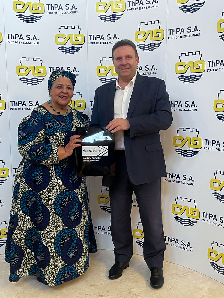 Η Πρέσβης της Δημοκρατίας της Νότιας Αφρικής, Beryl Rose Sisulu, συνοδευόμενη από τον Επίτιμο Γενικό Πρόξενο της Δημοκρατίας της Νότιας Αφρικής, Βασίλη Τάκα και τους συνεργάτες της, επισκέφθηκε χθες την ΟΛΘ Α.Ε. Στη συνάντηση συμμετείχαν ο Εκτελεστικός Πρόεδρος Δ.Σ. & Διευθύνων Σύμβουλος της ΟΛΘ Α.Ε., Θάνος Λιάγκος, η Γενική Εμπορική Διευθύντρια και Διευθύντρια Στρατηγικής Επικοινωνίαςτης ΟΛΘ Α.Ε., Θεοδώρα Ρήγα και άλλα στελέχη της Εταιρείας.